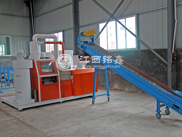 自動(dòng)化一體銅米機(jī)是專業(yè)干式分離廢舊電線電纜的生產(chǎn)線。例如:舊汽車電路線,通訊電纜線,以及剝線機(jī)不適合加工(各種民用電線)廢舊雜料電線.毛絲細(xì)線等.此機(jī)的特點(diǎn)是大小線不用分類可以同時(shí)破碎分離,結(jié)構(gòu)新型,生產(chǎn)量大,耗電少,分選率高,一次投料,多機(jī)協(xié)作完成。全線由PLC控制,在國內(nèi)處于領(lǐng)先水平。該機(jī)的開發(fā)成功,即解決了焚燒取銅方法中出現(xiàn)的問題,又能提高回收銅的質(zhì)量,并可將塑料回收利用,同時(shí)解決環(huán)境的污染。