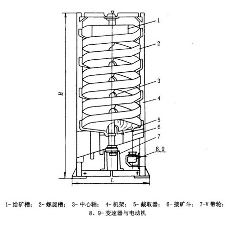 一款利用礦漿在螺旋回轉(zhuǎn)運(yùn)動(dòng)中產(chǎn)生的慣性離心力實(shí)現(xiàn)輕重礦物分選的重選設(shè)備。